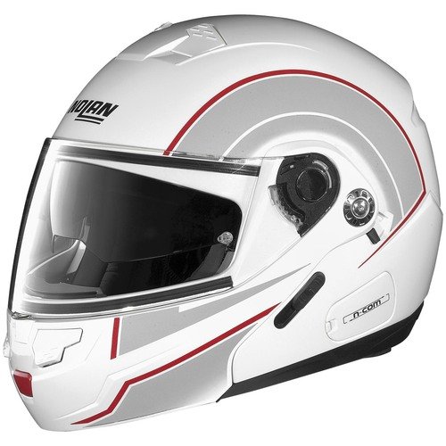 Nolan N90 Drive Helmet (Flat White/Red, Medium)?VPS (Vision Protection System): Short dark shield mounted on the inside of the shell and it moves independently from the clear shield. As thick as a regular face shield, it provides real eye protection when used independently from the clear shield. Also available in light blue, smoke, and amber. Easily operated by a slider on the side of the helmet. Ready for N-Com communication system. Aerodynamic polycarbonate shell with built-in spoiler for improved stability safety dual-action Centromatic release system. Fully removable and washable Clima-Comfort liner on snaps with extra neck roll for wind-noise reduction. Reflective panels on the back of the liner and the chin curtain. Dual top vent with exhaust grid in the rear spoiler and chin bar vents. Optically correct, push-button quick-change Lexan face shield, offers UV 400 protection. Multi-position anti-scratch shield accepts NFR anti-fog insert. Chin curtain, Microlock (adjustable) retention system, sanitized anti-microbial hypoallergenic interior and velour chin-strap padding included.